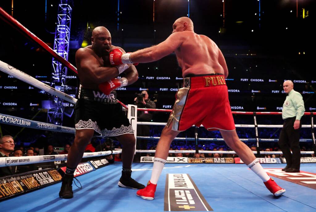 Lo siguiente para Fury es una posible pelea indiscutible con el campeón de la WBO, IBF, IBO, WBA Oleksandr Usyk a principios de 2023. En el primero, Chisora lanzando grandes golpes a Fury. Fury estaba haciendo mucha retención para anular a Chisora. Fury comenzó a soltar algunos golpes mientras Chisora cargaba. Varios uppercuts aterrizaron en Chisora.