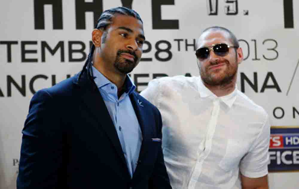 Tyson Fury y David Haye se estarán enfrentando el 28 de Septiembre desde el Manchester Arena. La pelea será televisada localmente por SKY Sports y transmitida en los Estados Unidos por HBO.