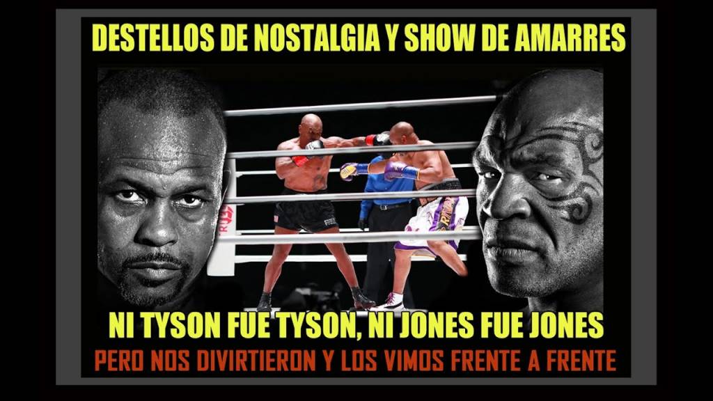 La exhibición de Mike Tyson y Roy Jones Jr. colmó las expectativas de quienes esperábamos eso mismo: una pelea de fantasía entre dos leyendas que llenaron nuestra memoria de peleas emocionantes, cada uno con su estilo y en su tiempo de reinado. Tyson atropellando y destruyendo hasta el KO, Jones jugando con sus virtudes técnicas incomparables y su esgrima única para golpear y escabullirse sin rasguños. En la noche de su pelea de nostalgia vimos destellos de esa escenografía.