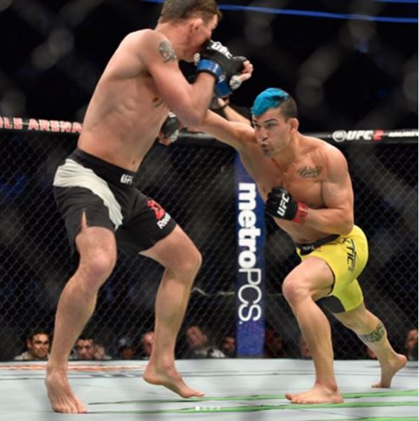 Going into Round 2 both men traded heavy leather in the middle of the Octagon. Sanders timed his foe with a clean straight right that hurt Alcantara and then punished him along the cagewall with some hard knees to the body and hooks to the head. This timw however, the outcome would be allot different; not as many punches absorbed by Iuri nor a one sided ground and pound attack but rather his grappling prowess kicked in and he scrambled for a deep kneebar. The talented ground wizard sunk in the hold deep on his man’s right leg. With Sanders rolling to his own right, making matters worst he had no choice but to tap out to the hold in a shocking turn of events.