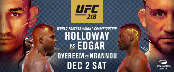 Las Vegas – UFC® will make its first appearance in Detroit in more than 20 years with the 145-pound world title on the line when Max Holloway makes his first walk as champion against No. 2 ranked Frankie Edgar in the main event of UFC® 218: HOLLOWAY vs EDGAR.Setting the stage for the main event will be two bouts with title implications as No. 1 ranked Alistair Overeem and No. 4 Francis Ngannou clash in a heavyweight tilt, and top lightweight contenders No. 3 Eddie Alvarez and No. 5 Justin Gaethje try to position themselves in the stacked l55-pound division. The event takes place Saturday, Dec. 2 at Little Caesars Arena in Detroit and will air live on Pay-Per-View.