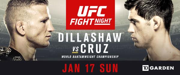 UFC FIGHT NIGHT®: DILLASHAW vs. CRUZ will air live on FS1 at 10 p.m. ET/7 p.m. PT on Sunday, January 17, with the prelims kicking off the evening on FS1 at 8 p.m. ET/5 p.m. PT and on UFC FIGHT PASS® at 5:45 p.m. ET/3:45 p.m. PT.