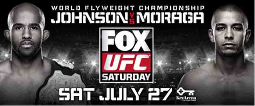 UFC® on FOX: JOHNSON vs. MORAGA takes place Saturday, July 27 from KeyArena in Seattle, Washington. The event will showcaseflyweight champion Demetrious Johnson (17-2-1, fighting out of Parkland, Wash.) taking on challenger John Moraga (12-1, fighting out of Phoenix, Ariz.) for the world title. The co-main event features a welterweight showdown between rising third-ranked superstar Rory MacDonald (14-1, fighting out of Montreal, Quebec, Canada) and hard hitting fourth ranked Jake Ellenberger (29-6, fighting out of Lake Forrest, Calif.). The special also features an in-depth look at hard-hitting veteran Robbie Lawler (20-9, 1 NC, fighting out of Coconut Creek, Fla.) and durable knockout artist Bobby Voelker (24-9, fighting out of Kansas City, Mo.), who will face each other in a welterweight battle.