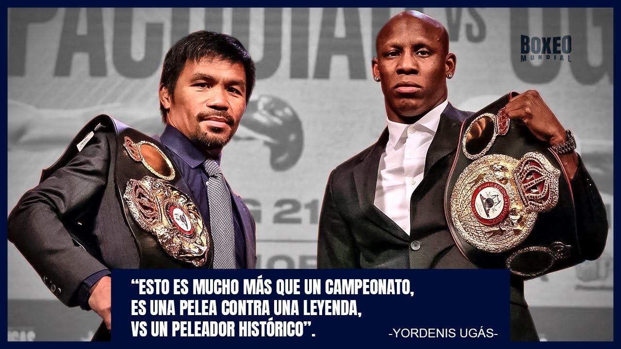 El cubano Campeón del Peso Welter de la AMB Yordenis Ugas defenderá su título contra Pacquiao, quien obtuvo ese título cuando él derrotó a Keith Thurman en su pelea más reciente de julio del 2019. Ugas se estaba alistando para defender su cinturón por primera vez ante el argentino Fabián Maidana en el co-evento principal de la cartelera original de Spence-Pacquiao. El verse elevado al evento principal enfrentando a una leyenda como Pacquiao significa que Ugás obtendrá una pelea de esas que definen su carrera.
