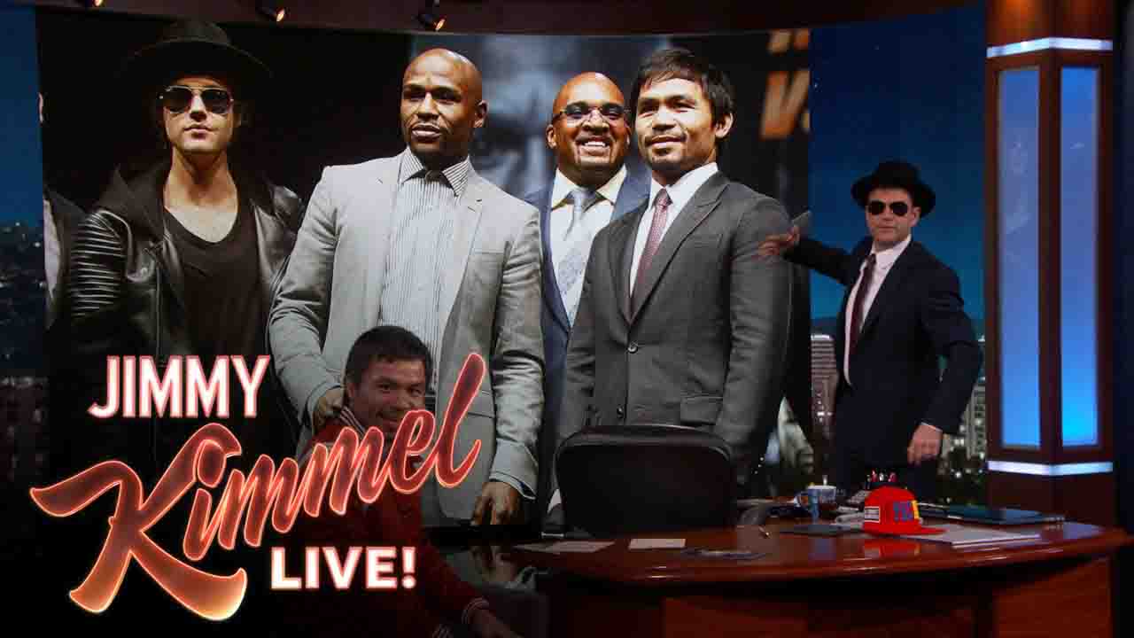 HOLLYWOOD, CALIF. (April 23, 2015) – Fighter of the Decade, eight-division world champion and boxing superhero CONGRESSMAN MANNY “Pacman” PACQUIAO made another memorable guest shot on Wednesday’s Jimmy Kimmel Live! It was the ninth time Manny had been on Kimmel’s popular late-night talk show — more than any other active fighter — in their series of entertaining appearances together dating back to November 3, 2009 (the week before Manny’s knocked out defending WBO welterweight champion Miguel Cotto for his seventh of eight division world titles).