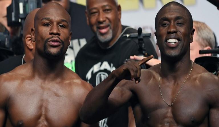 Mayweather y Berto lograron los pesos sin problemas en el pesaje del viernes. (AFP)