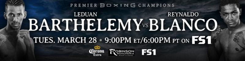 NICE, CALIF. – Undefeated Cuban prospect Leduan Barthelemy(13-0, 7 KOs) scored a ninth round stoppage of Reynaldo Blanco (14-4, 8 KOs)Tuesday night in the main event of Premier Boxing Champions TOE-TO-TOE TUESDAYS on FS1 and BOXEO DE CAMPEONES on FOX Deportes from Robinson Rancheria Resort and Casino in Nice, California.