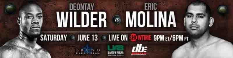 Birmingham, Ala. (May 14, 2015) – Undefeated Heavyweight World Champion Deontay “The Bronze Bomber” Wilder (33-0, 32 KOs), of Tuscaloosa, Ala., will make the first defense of his title when he faces Eric “Drummer Boy” Molina (23-2, 17 KOs), of Raymondville, Texas, in the main event of SHOWTIME CHAMPIONSHIP BOXING® on Saturday, June 13, live on SHOWTIME® (9 p.m. ET/6 p.m. PT) at Bartow Arena in Birmingham, Ala.