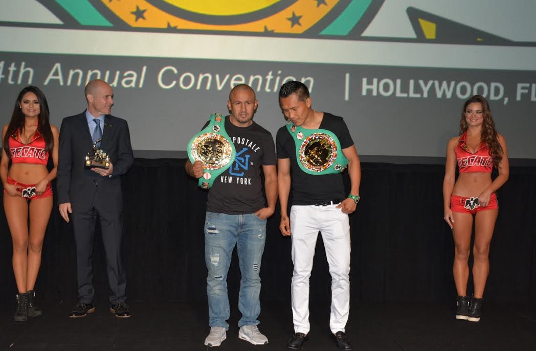 Francisco Vargas (derecha) y Orlando Salido (izquierda), asistieron esta semana a la quincuagésima cuarta convención del Consejo Mundial de Boxeo (C.M.B.) en Hollywood, Florida (Estados Unidos) Ambos guerreros, asistieron por invitación del C.M.B. para estar presentes en la premiación de la pelea del año, premio que les fue otorgado luego de la electrizante pelea que presentaron en junio pasado.