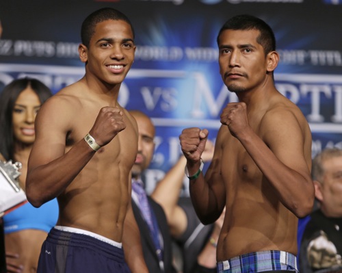 Félix ‘Diamante’ Verdejo (izquierda) se apuntó su cuarta victoria por la vía rápida el pasado sábado luego de derrotar al mexicano Engelberto Valenzuela (derecha). (Suministrada/PMC)
