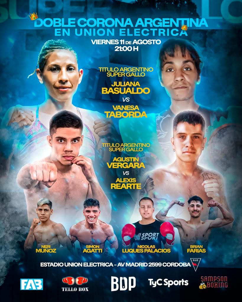 Frente a Basualdo se plantará, con toda su experiencia, la excampeona Silver del Consejo Mundial de Boxeo (WBC) y cuatro veces retadora mundialista, Vanesa Taborda, nacida en Rafaela, radicada en Córdoba, de 32 años y palmarés de 11-15-3-1 SD, 1 KO.
