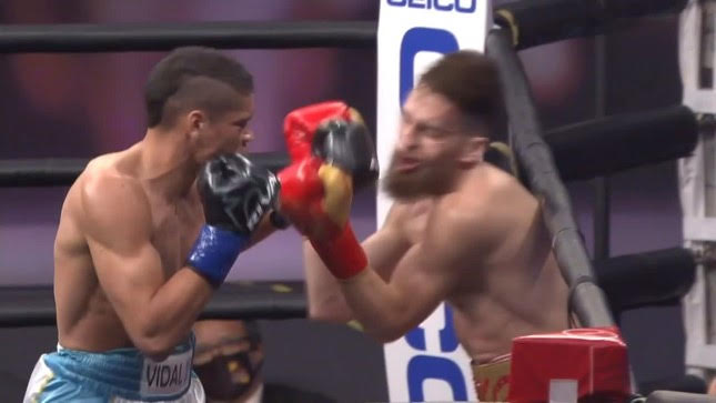 Luego de un primer asalto de cautela, donde fue el “Pety” quien conectó los mejores golpes, el de Montevideo salió con fuerza en el segundo y lastimó a Ortiz con un sólido derechazo voleado. El texano quedó sentido y Vidal fue a definir acertando con potencia y precisión golpes de todo calibre que motivaron que el árbitro Edward Hernández detenga la pelea al minuto y 58 segundos.