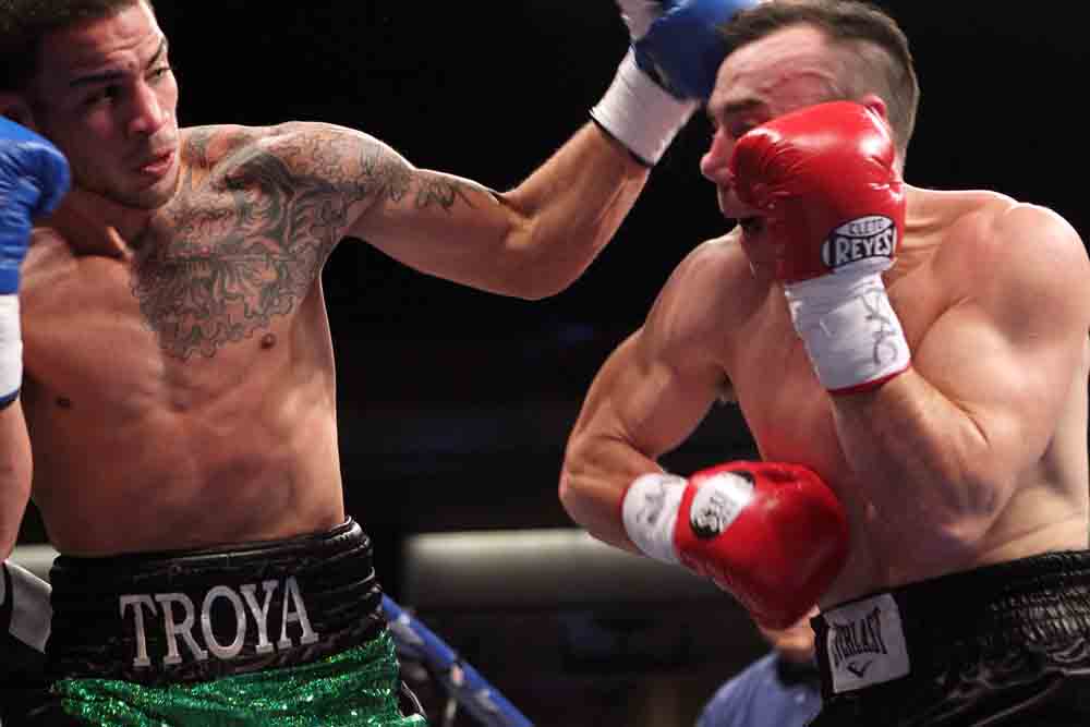 LAS VEGAS, NV- 3 de marzo – El fuerte pegador Jorge “Destroyer” Meléndez mejoró su record profesional a 26 victorias con 2 derrotas y 25 impresionantes nocauts al vencer por nocaut a los 13 segundos del cuarto asalto al veterano Ryan Davis (24-10-3, 9 Ko’s). Jorge quien subió al ring luciendo una gran condición física comenzó dominando el encuentro desde el campanazo inicial. Colocando fuertes jabs al rostro de Davis, el “Destroyer” segundo a segundo fue creando los momentos para lastimar a su rival. Ryan intentó ripostar el ataque con ráfagas de golpes que llevaron a Jorge a las cuerdas pero no lograron mover la humanidad de Manatieño. Ya para el tercer asalto Jorge coló buenos golpes que provocaron que Davis colocara su rodilla en la lona para obtener el conteo de protección. En el cuarto asalto Jorge tenia todas las de ganar al detectar un desgatado Ryan Davis el fué sorprendido por un potente ‘upper’ de derecha que terminó el combate de forma explosiva en su debut como estelarista para la plataforma de Showtime Extreme. “Estoy muy contento con esta gran victoria en Las Vegas y por Showtime. Me siento smuy orgulloso de la forma en que la empresa Promociones Miguel Cotto me está llevando. En todo me sentí muy fuerte y gracias a Dios no sentimos los golpes. Sabíamos que íbamos a terminar la pelea temprano” comentó el Meléndez. “Jorge peleó muy bien, lució en grande. Es un boxeador muy fuerte con grandes habilidades. Tenemos grandes planes para él” comentó el co-promotor del evento Miguel Cotto donde en la pelea estelar el cubano Richar Abril retuvo el campeonato mundial ligero de la AMB al derrotar por decisión unánime al africano Sharif Bogere. “Jorge fue muy dominante, su actuación dejó un gran sabor en la industria del boxeo. La forma en que terminó la pelea fué impresionante” relató el co-promotor y empresario Héctor Soto. Por otro lado el prospecto y fuerte pegador Jeffrey “Dinamita” Fontánez mantuvo su record intacto de 11 victorias sin derrotas y 9 nocauts al vencer por decisión unánime al veterano Daniel Attah (27-14-1,10Ko’s). “Jeffrey peleó muy bien, tuvo que emplearse al máximo ante un rival que le triplicaba en experiencia. Hizo los ajustes y logró vencer. Siempre hay espacio para mejorar y capitalizar en los errores que se cometieron” subrayó su promotor Miguel Cotto.