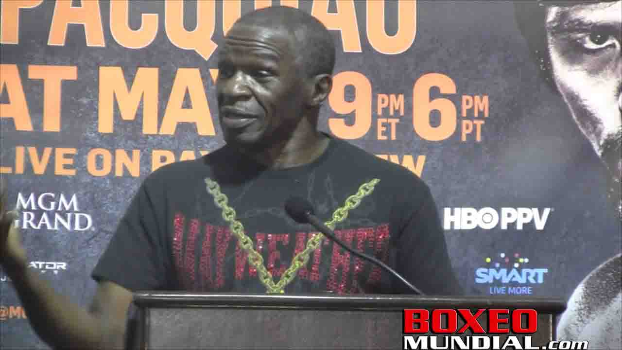 Floyd Mayweather sr., father and trainer to Floyd “Money” Mayweather jr., talks with reporters about the upcoming battle with Manny Pacquiao.
