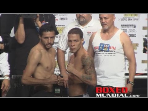 El mexicano quien suma una impresionante marca de 58 victorias, 49 de ellas antes del límite a cambio de 9 derrotas, escaló la romana con seguridad para registrar un peso de 58.500 kg., por debajo del límite de la categoría de las 130 libras; al igual que Oquendo, quien registró un idéntico tonelaje y también fue declarado en óptimas condiciones médicas para este combate.