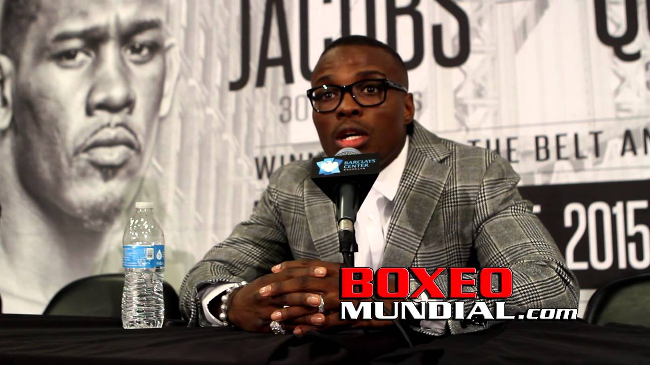 Referee Harvey Dock waved off the fight at 1’25” of the opening frame, after a flurry of punches and hard rights from Jacobs (31-1, 28 KOs) left Quillin (32-1-1, 23 KOs) out on his feet and unable to defend himself. Quillin spoke with the press about what he thought of the referee Harvey Dock decision to stop the fight.
