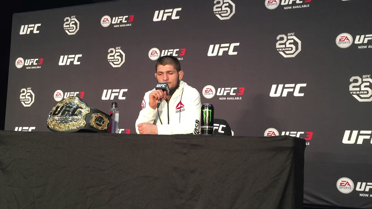 The new UFC lightweight champion Khabib Nurmagomedov who was addressing the media at UFC 223 of his title win over Al Iaquinta, a fight against Georges St-Pierre and Conor McGregor, McGregor’s bus attack, what’s next, and much more.