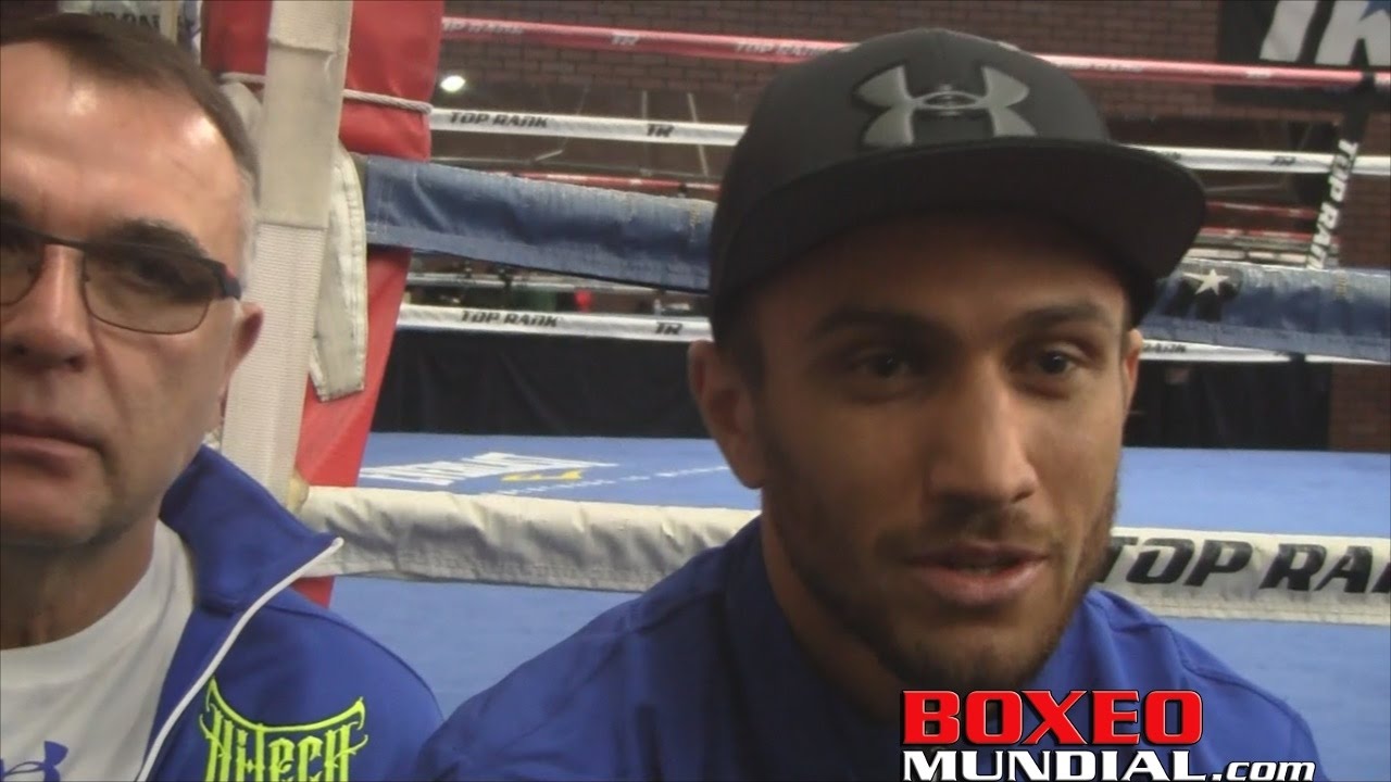 “The biggest plus he has is his size, his reach, his power. As far a minus, every boxer has some minus. I’ll try to use it.”