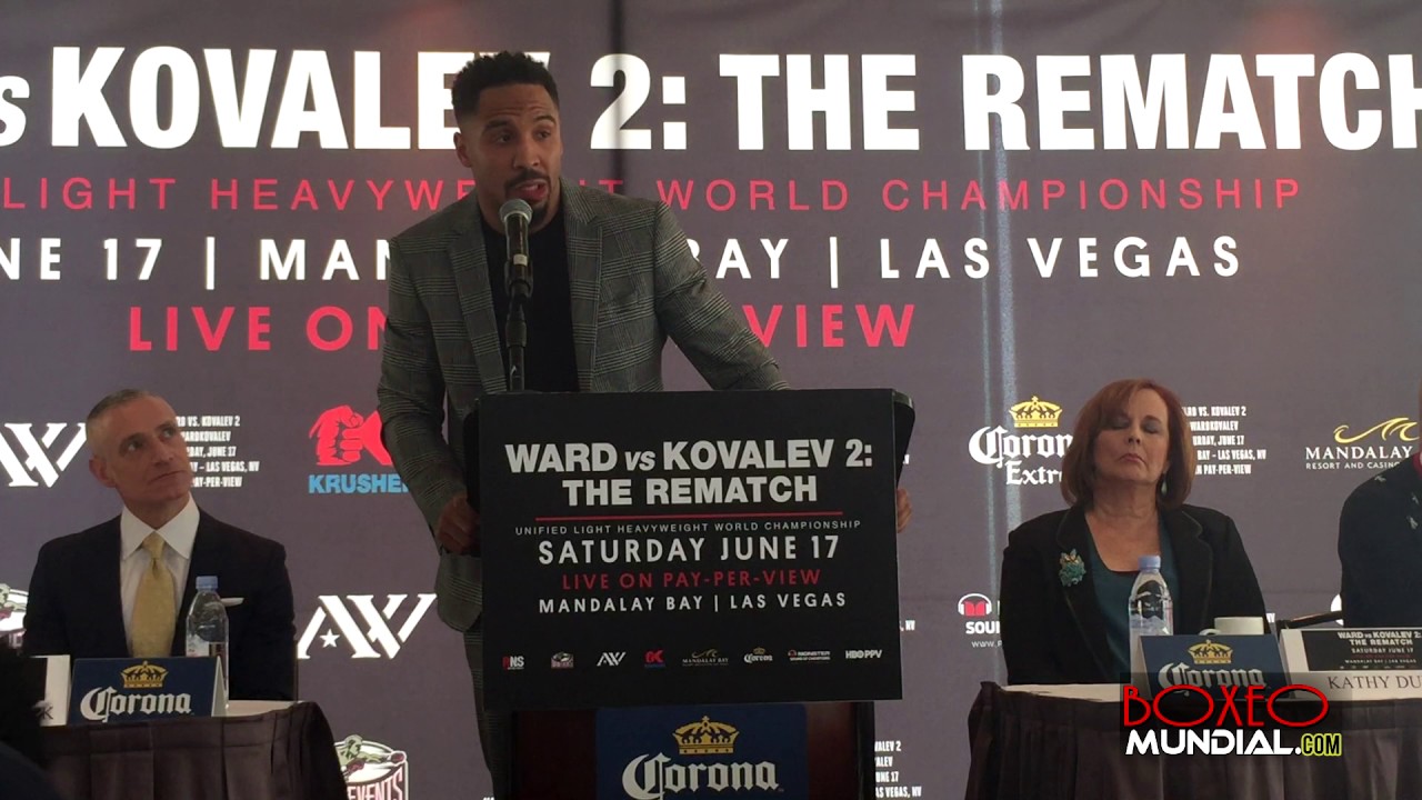 New York, NY – (April 10) In New York City, Andre “SOG” Ward (31-0, 15 KOs) and Sergey “Krusher” Kovalev (30-1-1, 26 KOs) both met to formally address the media with details surrounding Ward vs. Kovalev 2: “The Rematch”. The championship event will take place Saturday, June 17 at the Mandalay Bay Events Center in Las Vegas and will be produced and distributed live by HBO Pay-Per-View® beginning at 9:00 p.m. ET/6:00 p.m. PT.
