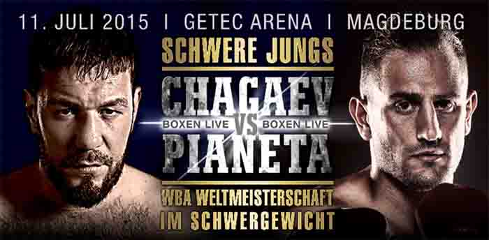 Sat.1 will broadcast the WBA World Championship between Chagaev and Pianeta live in Germany, Austria and Switzerland starting at 10.45pm German time on July 11th. Tickets for the “Heavy Night” at GETEC Arena in Magdeburg are still available online (eventim.de or tickethall.de) starting at 26 Euros.