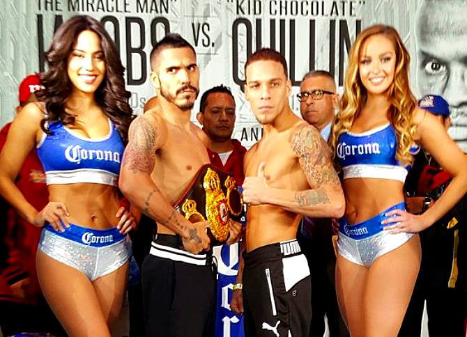 Así las cosas, Oquendo (26-4, 16 KOs) y Cuéllar (27-1, 21 KOs) se fueron por debajo del límite de la división pluma de 126, mientras que en el combate principal de la velada, el monarca mediano de la AMB Daniel Jacobs (30-1, 27 KOs) pesó 159 ½ libras y el ex titular mundial Quillin (32-0-1, 23 KOs) marcó 159 libras.