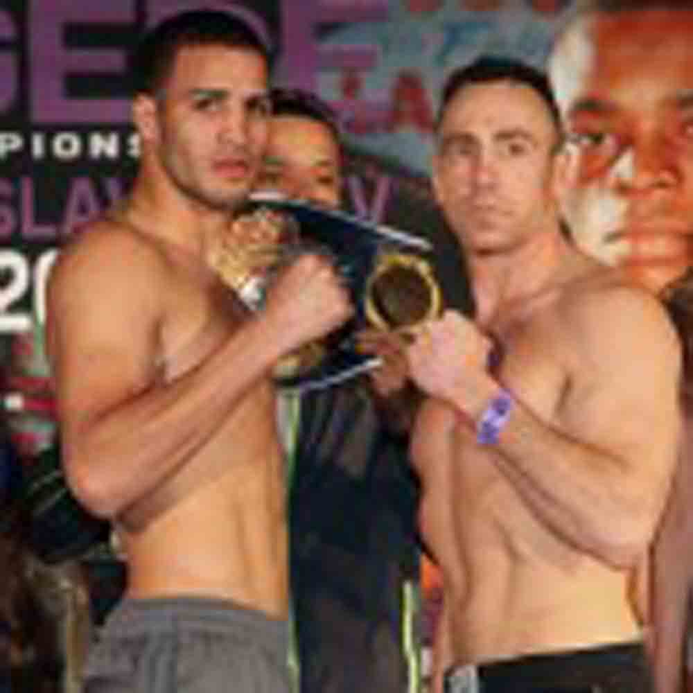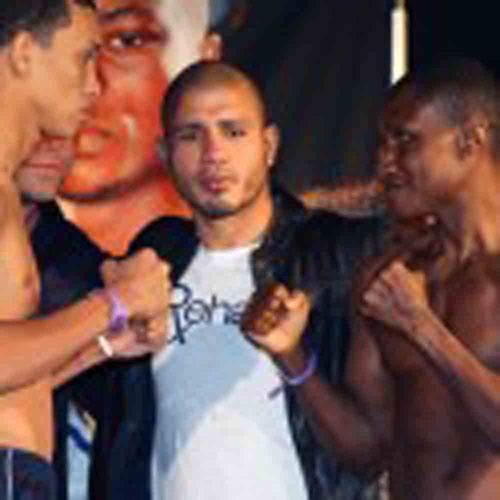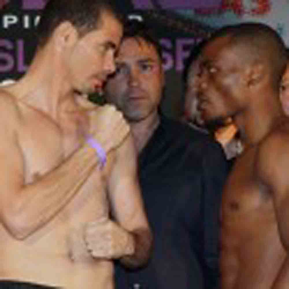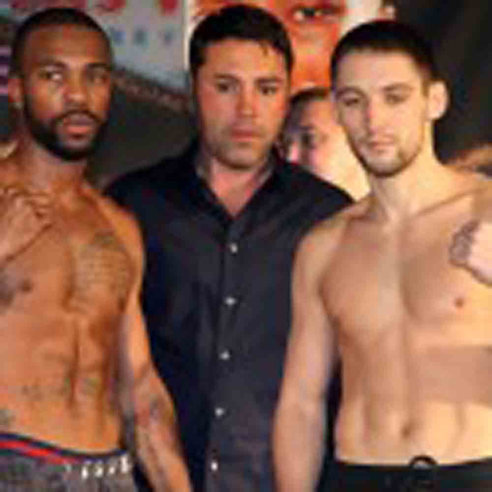 LAS VEGAS (March 1, 2013) – All 14 boxers who will compete on Golden Boy Promotions’ fight cardtomorrowSaturdayMarch 2 from The Joint at Hard Rock Hotel & Casino in Las Vegas, including those who will duke it out live on SHOWTIME® (10 p.m. ET/PT, delayed on the West Coast) and SHOWTIME EXTREME® (8 p.m. ET/PT), made weight on their first attempts Friday at Hard Rock.