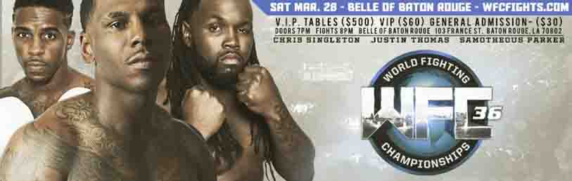 BATON ROUGE, LOUISIANA – March 19, 2015 – Boxing is back in the Capital City on Saturday, March 28th, when World Fighting Championships presents WFC 36 at the Belle of Baton Rouge. Baton Rouge is fast becoming a fight town, with capacity crowds coming out to support the city’s local talent. Justin Thomas (11-0, 6KO), who was born and raised in Baton Rouge, tops the card, facing Athens, Georgia’s Timothy Hall, Jr. in an 8-round Super Middleweight contest.
