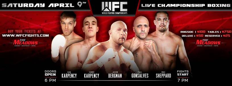 “We couldn’t be happier that our milestone 50th event happens to be our debut in Pennsylvania,” said WFC Promoter Matt McGovern. The young promoter inked a multi-event deal with The Meadows Racetrack and Casino in late 2015. “We are going to give boxing fans and casino guests a high-quality, action packed night of fights, just as we’ve done in our previous 49 events. We are bringing three titles to Pittsburgh. We want to show the fans and local boxing community that we are here to stay.”