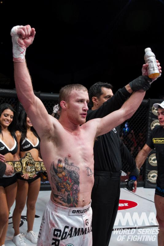 Gaethje defended his WSOF Lightweight title and kept his belt by earning the TKO stoppage at 3:09 of the second round of a scheduled five-round fight.