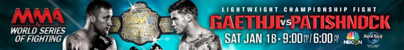 The promotion’s next event is scheduled for Jan. 18 at the Seminole Hard Rock Hotel & Casino in Hollywood, Fla. “World Series of Fighting 8: Gaethje vs. Patishnock” sees Justin Gaethje meet Rich Patishnock for the promotion’s inaugural lightweight belt, while Jessica Aguilar faces Alida Gray for World Series of Fighting’s inaugural women’s strawweight title.