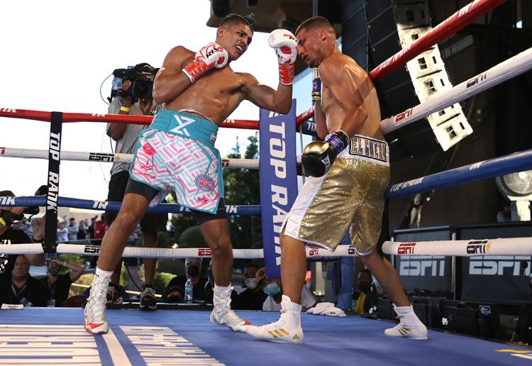 Xander Zayas conecta un golpe al rostro de su rival mexicano José Luis Sánchez durante la cartelera al aire libre, en Arizona. Mikey Williams/Top Rank