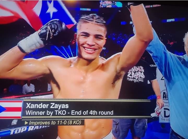 Observé en repetición el combate de el puertorriqueño 𝐗𝐀𝐍𝐃𝐄𝐑 𝐙𝐀𝐘𝐀𝐒 (11-0, 8 KO’s) y D𝐀𝐍 𝐊𝐀𝐑𝐏𝐄𝐍𝐂𝐘 (9-4-1, 4 KO’s). No hay duda que la superioridad técnica de Zayas era evidente. Pero lo más que me agradó fue su paciencia para ejecutar su plan. Tenemos que tener en cuenta que es sólo un chico de 19 años.