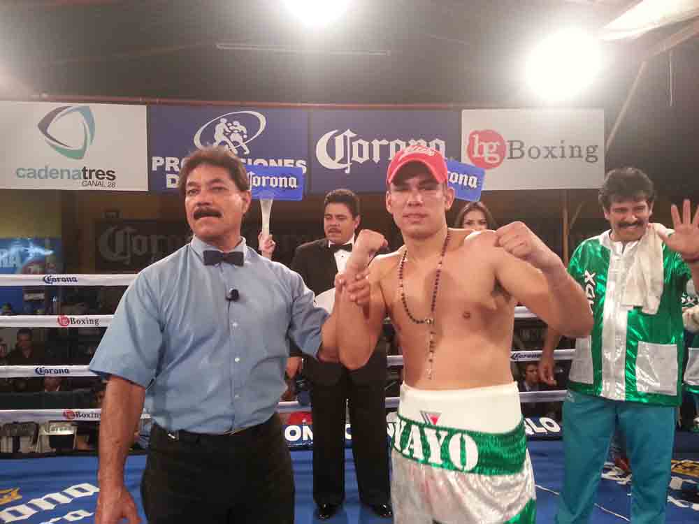 El talentoso jalisciense Mario ‘Yayo’ Muñoz, se impuso por la vía rápida al capitalino Cecilio ‘Boga’ Santos en pleito acordado a diez giros en un peso de 57 Kg.