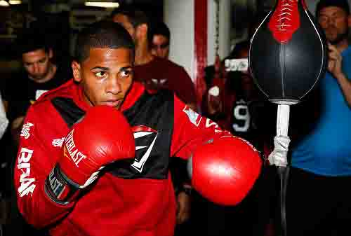 Félix Verdejo golpea la pera loca durante su entrenamiento ayer ante los medios en la ciudad de Nueva York. (Top Rank/Mickey Williams)