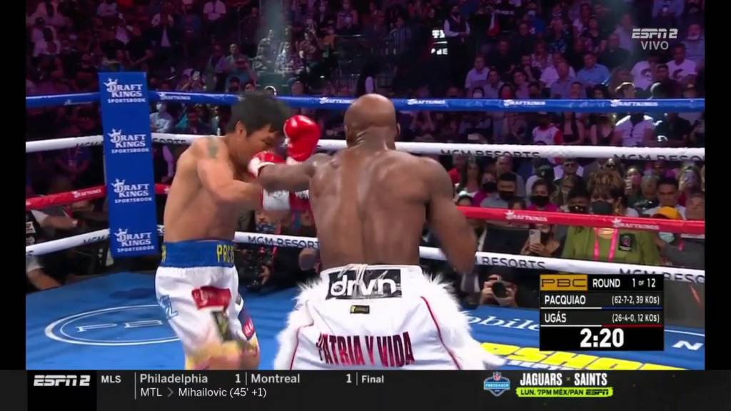 Ugas, quien estaba programado para pelear en la cartelera, intervino en lugar del lesionado Errol Spence Jr. para enfrentar a Pacquiao con solo 11 días de anticipación. Perdió una decisión cerrada ante Shawn Porter en 2019, pero desde entonces ha ganado tres peleas consecutivas.