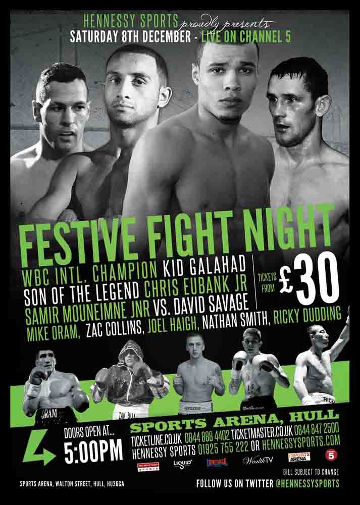 The action packed undercard will feature Hull’s Samir Mouneimne Jr who will be challenging the Scottish Area super featherweight champion David Savage over 10 rounds in a British Featherweight Title Eliminator and Hull based fighters, Ricky Dudding, Nathon Smith, Joel Haigh, Goole’s Zac Collins and Jordon Gill from Chatteris.