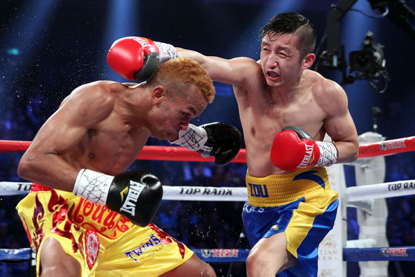 Amnat Ruenroeng (izq en la foto contra Zou) es filipino, campeón mundial peso mosca versión FIB, invicto en 15 pleitos con 5 KO’s; alguien que, según muchos favorecedores de Zou Shiming (que no pega), ex doble campeón olímpico cuyo récord es 6 ganadas, 1 perdida con 1 KO’s, hasta que se encontrara con “el fenómeno olímpico chino” mantendría su corona…no fue así en Macao ayer ¿Sorpresa?Aquí viene lo bueno: ningún “especialista” que arriesgó la credibilidad exagerando la clase del ex hijo pródigo de la Primera Potencia Mundial, lo ha considerado “sorpresivo”. A fin de cuentas, la reacción tardía ya no era posible, porque nunca se propone un ganador después que concluye un combate.